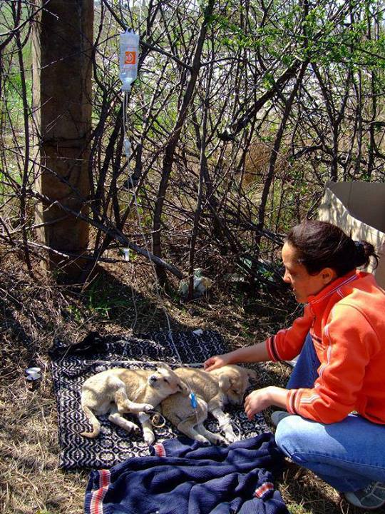 Irinia Neblea (http://www.facebook.com/irina.neblea?fref=ts), a young woman who, with only her poorly mother to help her, cares for 60+ animals at her self-built rescue centre in Constanta, Romania, with no running water, no car to get her to the supermarket or the vet, who carries and pushes on a cart many litres of water and many kilos of food each day, who builds kennels and disinfects the land with her own hands and a brush.... I could go on. I thank all the fates that I have been able to raise funds to help her a little towards recovering - at least financially - from a recent devastating outbreak of distemper at the shelter. I know that my contributions are a drop in her personal ocean, but I also know that they are a help and that makes me feel good. I have also spread the word about her and she has received donations from at least three people because of that - thank you to J, M and S who have big hearts.